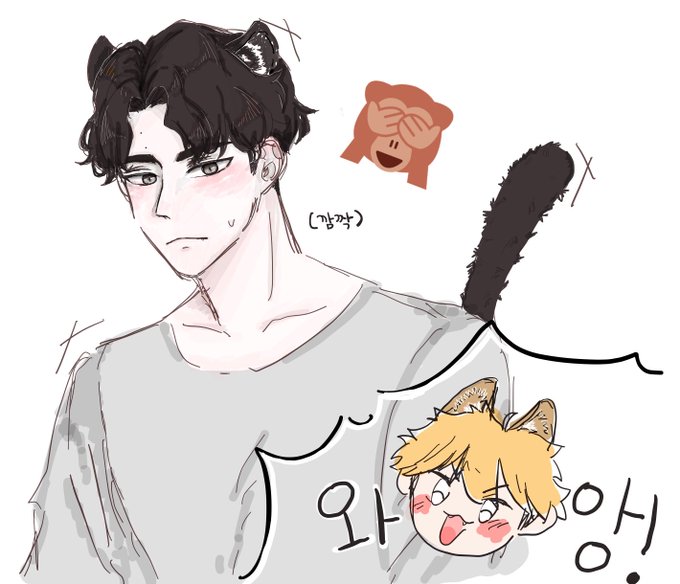 낙서~ 츠무랑 사무는 젤 좋아하는 공식 자세☺️😋 사이에 히나타 끼웠다💛🧡🤍