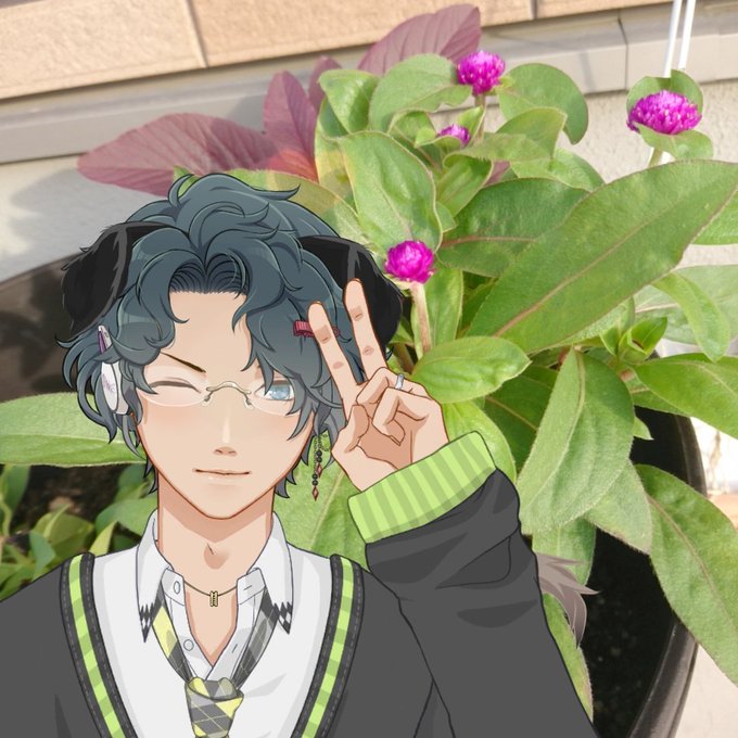 (赤い)メガネに斜め前髪にピョンと跳ねた黒い短い髪…💆
