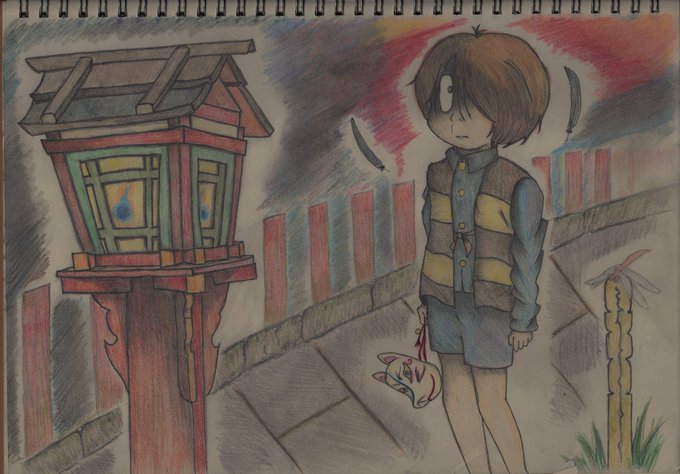 @aim_kitaro56 遅くなりましたーー。 素敵な絵を台無しにしてごめんヽ(;▽;)ノ アタシ、アナログなの忘れてた() 印刷しなきゃいけないの、忘れてた。 コピー用紙と色鉛筆の相性クッソ悪くて笑った…