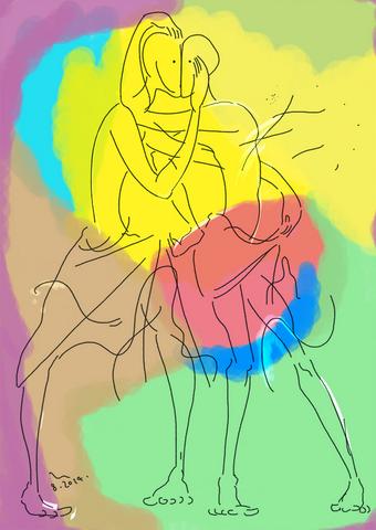 今描いた。私は絵を描いている時に日常よりも強く共感覚が出るのね。面白いから伝えたい。かゆい所に線や色を置いている感じ・・・。