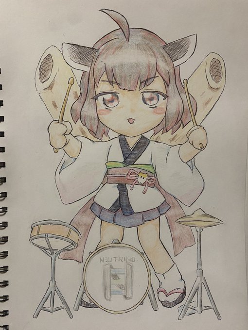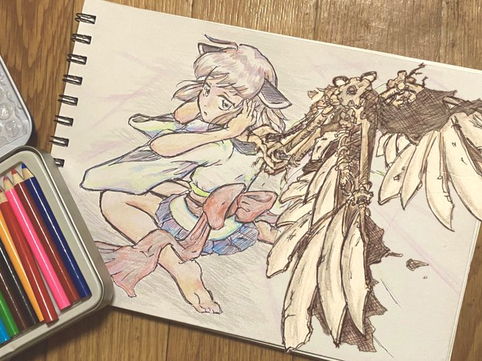 実は一旦アウトラインだけPCに取り込んでペイントソフトで彩色してみたんだけど、背景との馴染みや雰囲気が気に入らなくて結局色鉛筆w