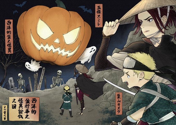 『西洋的盆行事之怪異討伐之図』(令和4年 火山雷弌 筆) #ハロウイン #Halloween2022 #HappyHalloween