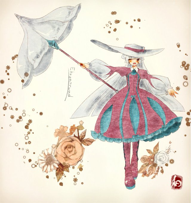 色ドリュウズのEhrentraud(エーレントラウト)。我が家には珍しい純正外人さん。プラチナブロンドの長い髪。怖いもの知らずで世間知らずなお嬢様。浮いていようが地に叩き落し、頑丈だろうがドリルで貫く必殺お嬢。傘は回転してドリルに。