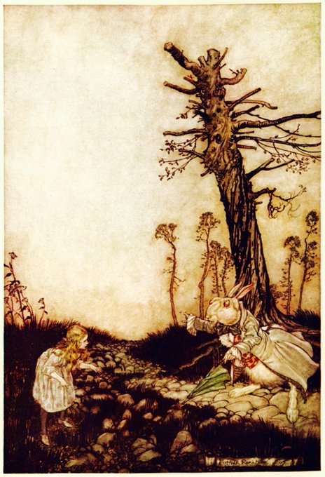 Illustrations of Alice in Wonderland, by Arthur Rackham - born on this day, 1867. #AliceInWonderland #Illustration