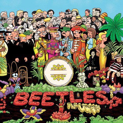 Beetle Bailey is very big in Scandinavia, with some work produced just for that market. My pal, Danish cartoonist Henrik Kim Rehr, produced these homages using the Beetle cast in iconic musical settings for a magazine over there, and I think they are freaking BRILLIANT.