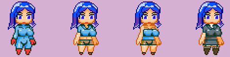 レオタード風も描いたけど、右下以外はレオタード過ぎるな… ステージ次第だけど上の真ん中二つあたりがよさそうかな。 右下は全編SFステージならアリか。