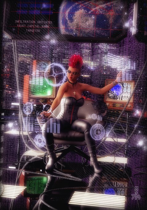 Templar hacker (and her cat) doing the dirty on Faust Capital Bank. "Alice and the Cat":