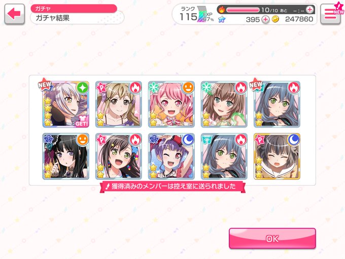 #にゃひとーく 今日の無料10連ガチァ結果 星4友希那さんきた〜(*^ω^*)