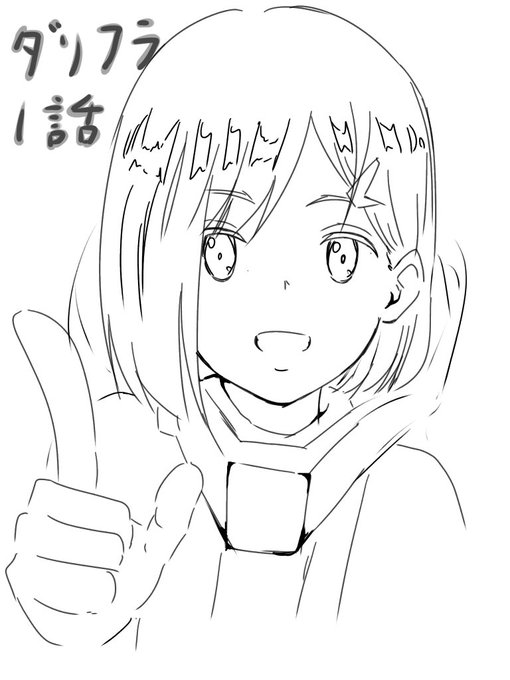 なんかアニメーターっぽいイラスト描いたけど上手さが違うね。下手 あと15分!楽しみいいいいいいいいいい #ダリフラ