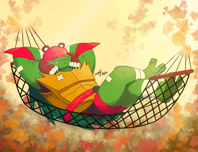 All is made right again in Raph's world knowing his family is healing, he gets to relax on a hammock with a beary comfy neck pillow 💖