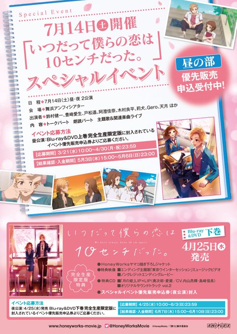 「僕10」BD&DVD上巻に封入されているイベント優先販売申込券(昼の部)の応募締め切りは、今月4/30(月)23:59までとなりますのでご注意くださいませ!https://t.co/ERVmoThG7J #ハニワ