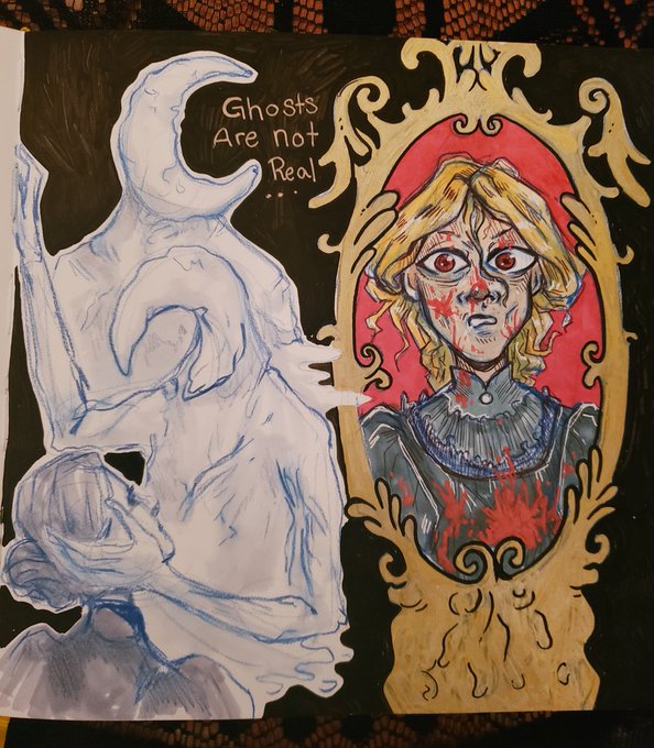 Have I mentioned how much I love the book "The death of Jane Lawrence" yet? Cuz I read it a month ago and I still can't stop thinking about it. Wanted to share my sketchbook page doodles and my book journal page for it cuz it's special to me. 🕯️👻
