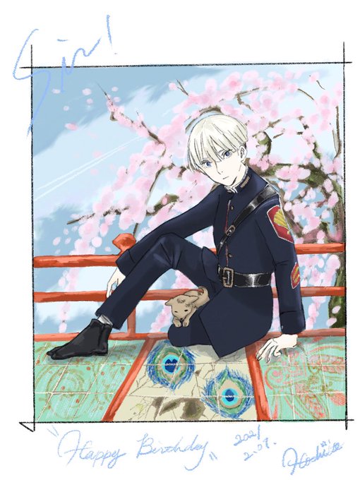 お誕生日絵が4枚になったぞ🎂🎂🎂🎂 2018→2021 上手くなってるかなあ😊