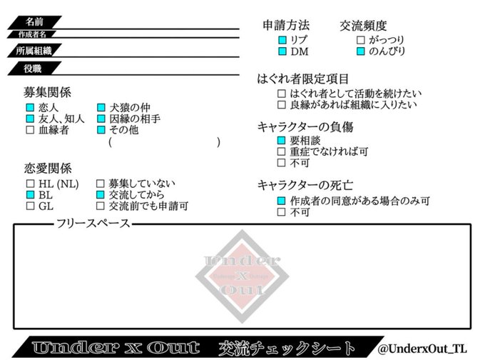 こちらの企画様に【@UnderxOut_TL 】で絵描きの一般構成員で失礼します!