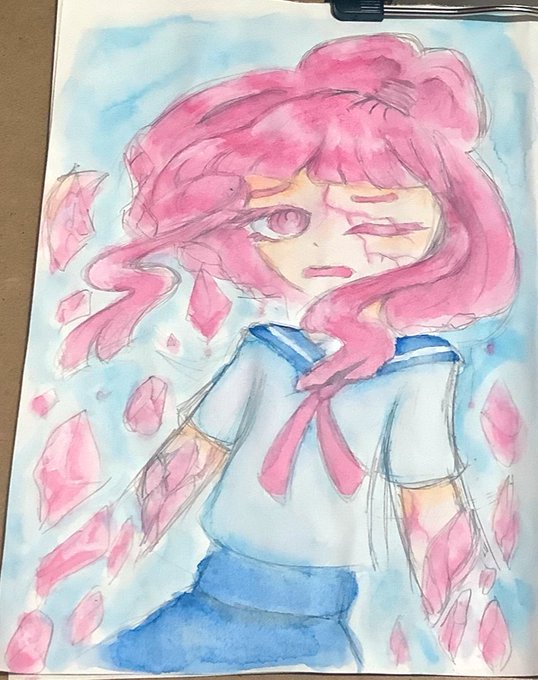 雨にうたれてるシモナストーン。 去年に同じ構図の描いたんだよね。 ハッピーバースデイ!1周年記念!! シモナストーン誕生、正確には3月の28だけど!!! 余談だけど昨日の雨で仕上げるに遅れたよ。 雨は天敵、はっきりわかんだね…(シミジミ #創作宝石 #星野の国