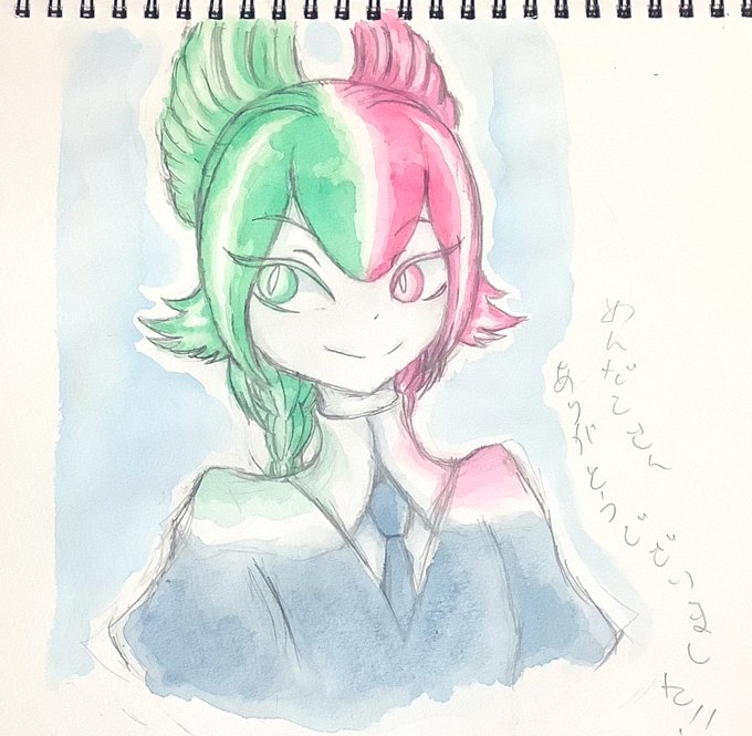 キャラデザが良すぎて描くのめっちゃ楽しかったです!!!! めんだこ(@Baby_1957NK )さん宅の バイカラートルマリンキャッツアイをお借りしました!! 楽しかったです!!!ありがとうございました!!! #創作宝石