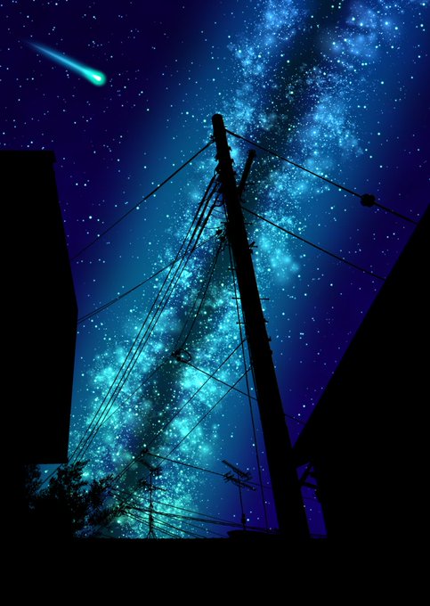 町を支えている電柱 #オリジナル #リメイク #天の川 #流れ星 #星空 #風景 #夜景 #電柱 #シルエット #CLIPSTUDIOPAINT https://t.co/f22Wd6HSf8
