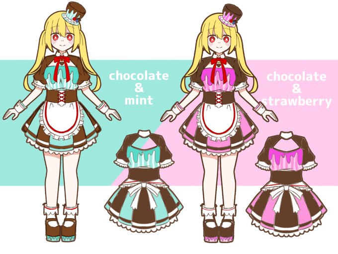 久しぶりの更新!!バレンタイン衣装です!チョコレートとメイド服イメージで描いてみました♪🍫