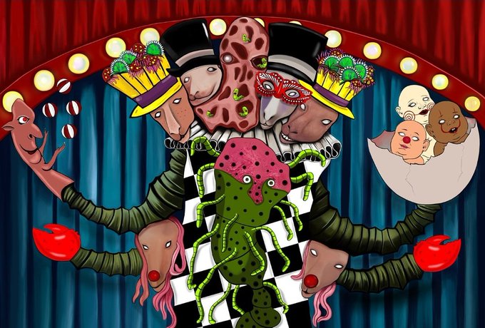 @ArtvisionNFT @squirreltology @polballonga @Rogona_makeup @EllenCowieArt Red head was the favorite. The best place next to Meaty Man. She had a strange interest in eating children's feet. Two freak servants were always by her side. People said this bastards were the result of Meaty Man and Red head!