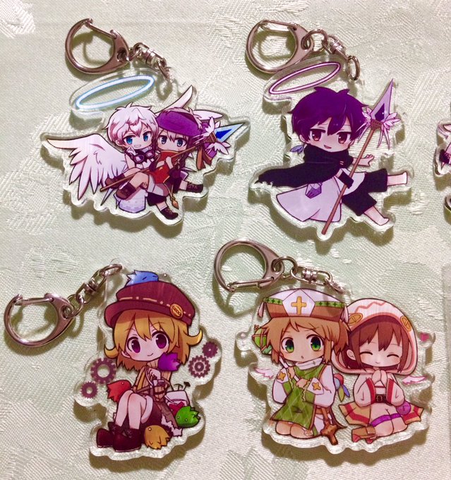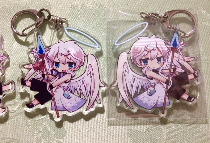 三毛猫さん (東7 L08a) のところで委託させてもらうアクリルキーホルダーです! 全5種類です!! 2枚目のオルトスくんは両面印刷です! #メルぱら