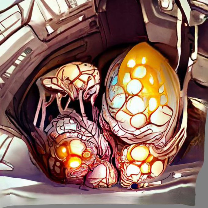 "Alien eggs inside the hive, artstation"