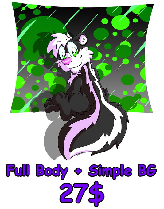 I offer Full body + simple background for $27 and telegram stickers for $12 each (maximum of 5 stickers per slot). Please dm me if you're interested.
