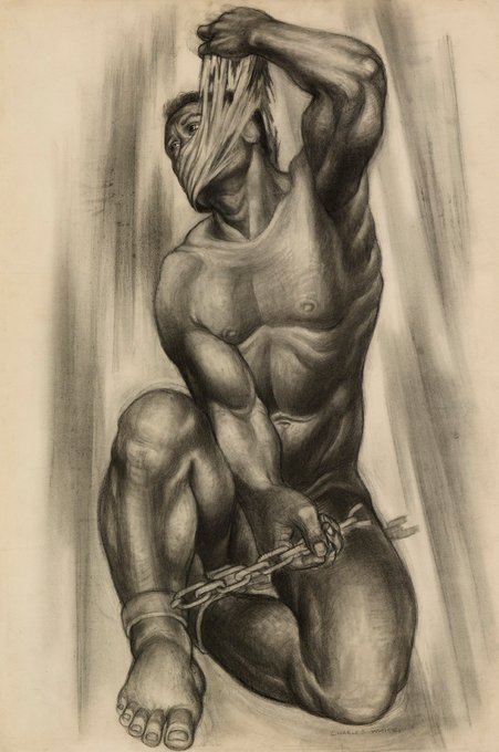 Charles Wilbert White.1918-1979. Caliban.c.1950. Charcoal with crayon,erasing,stumping and wash on thin cream wove paper.