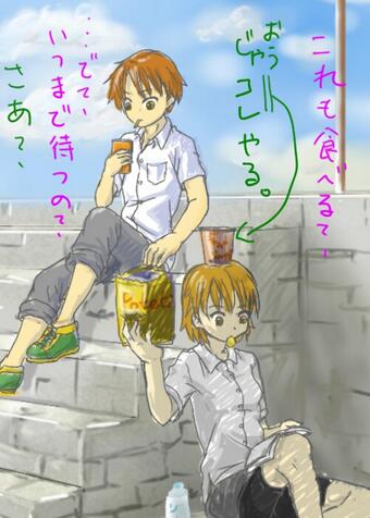 昨日のらくがき。腹部長っ((┌(。△。)┐))ワッハッハ 半分に割れるアイスキャンディーは絶滅しましたか? #らくがき