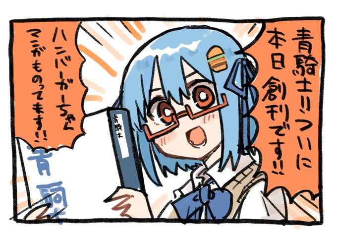4月20日!!今日は青騎士の発売日!!宣伝ハンバーガーちゃん漫画です。(なぜなら自分の漫画も載ってるからです)