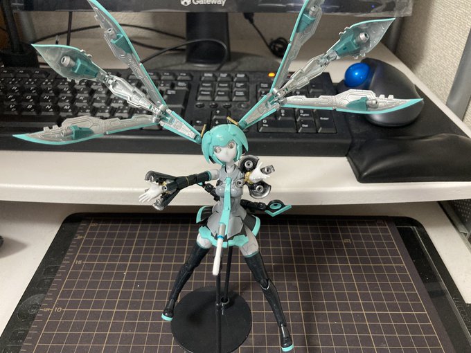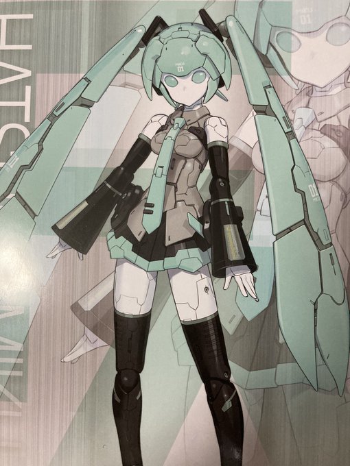 フレームアームズより、 フレームアーティスト・初音ミク。 全高15mの歌姫型機体。従来と違い共通フレームは採用されておらず完全なワンオフ機として製造された。 巨大ながら俊敏なダンスと歌を行うため全身にスピーカーと推進器が設けられており、「歩くライブ会場」と呼ばれている。パイロットは不明