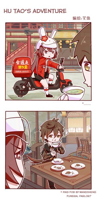 Hu Tao upon realizing who ordered the meal with Wangsheng's funds when working her part time job as a food delivery shipper 😂 (English + Chinese versions) #原神 #hutao x #zhongli #胡鍾 #鍾胡 #胡桃 #zhongtao #鍾離 #钟离