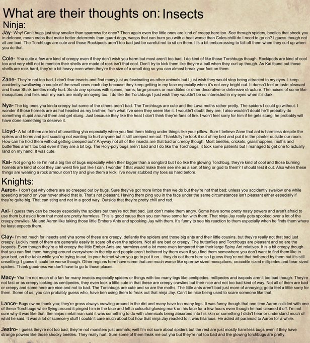 Just some more of what the characters in my story think of some of the things in the realm they find themselves in. This time some creepy crawlies. #ninjagofanart