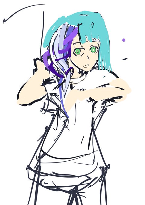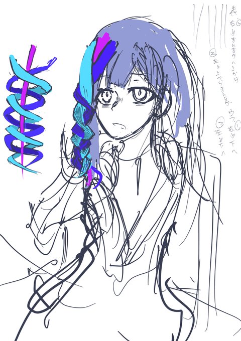 とりあえず今日はこんな感じで 三つ編みのサイズと形は生え際側から一個一個描いていくと絶対無理が出るので編みの先端と毛を持ってくるところを先に指定して、編みの数分に分割する感じになりそう