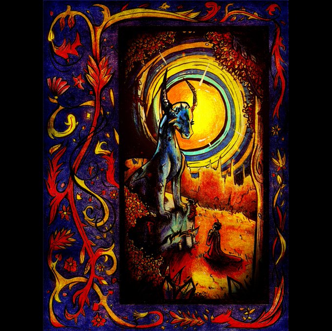 (3) Griffon enluminé et sa proie, une petite illustration sans prétention faite pendant mes vacances. J'aime beaucoup les textures 🤧 #ArtistOnTwitter