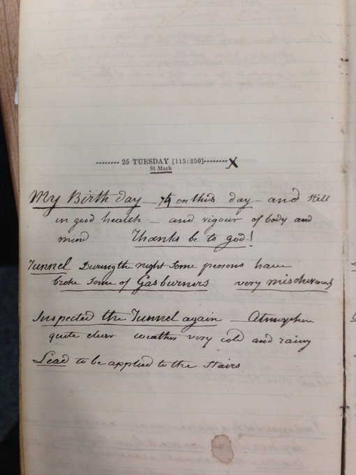 Sir Marc Isambard Brunel was born #onthisday 1769. Images show him with his block making machinery, with image of the Thames Tunnel for which he invented the tunnelling shield and birthday entry from his diary. Notice the comment re. vandalism in the tunnel.