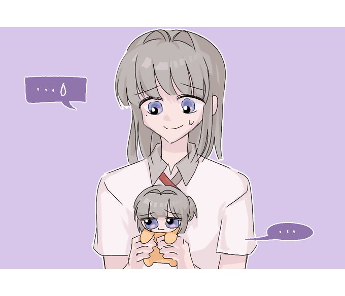 @VlrU40vhuN8LwLf 목이랑 어깨 사이에 닿는 회색 단발머리에 앞머리쪽 삐죽솟아서 옆으로 내려오는 머리가.. 특징입니다... 그 외에는 처진눈눈물점이 잇는것같아요?