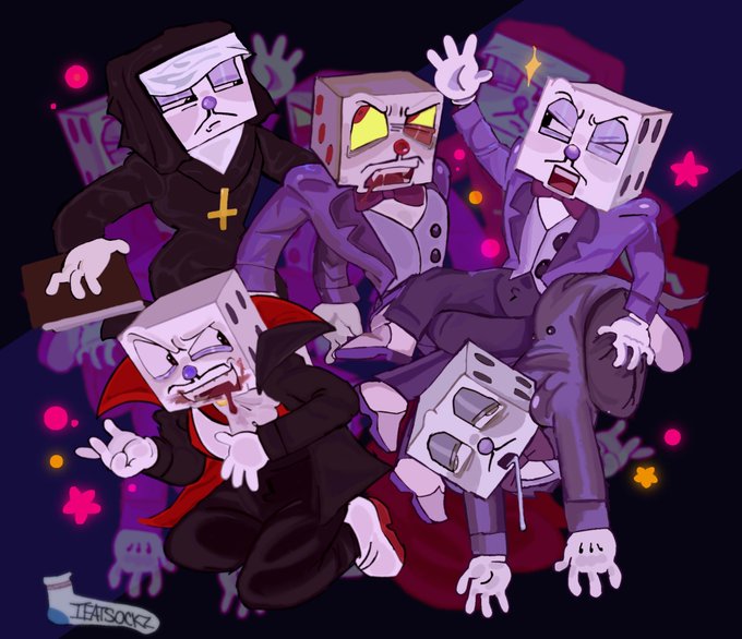 @ALICEINAMPHIBIA HI you can call me Sockz I go by she/they and I mostly draw fanart of whatever I’m feeling at that moment (most likely kingdice stuff) I REALLY love vampires and dark stuff but most of my art is the opposite here’s some! 🩸🩸🩸