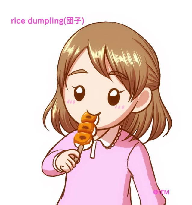【rice dumpling(団子)】 みたらし団子などのお団子のことを英語で“rice dumpling”といいます🍡 ちなみに、“dumpling”は団子状のものすべてをさします🌸 #イラスト #英語学習