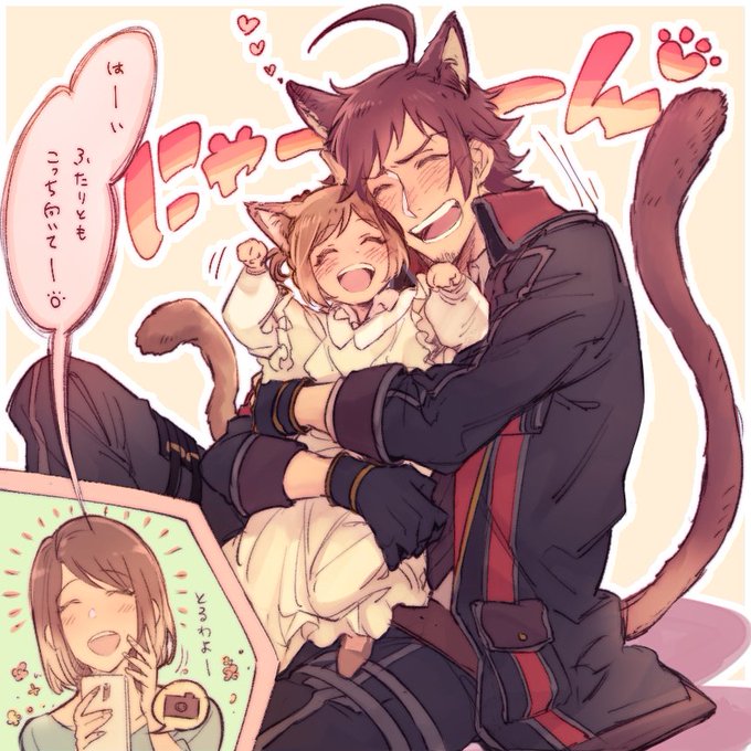 数分前まで渋い顏して嫌がっていたくせに「わたしもねこさんする」と揃いの耳しっぽを着けてきた娘の愛らしさにデレデレにでれ倒すケインさん家のケインパパ