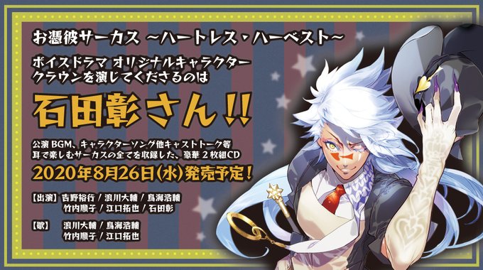 8月26日(水)発売「お憑彼サーカス ~ハートレス・ハーベスト~」ボイスドラマ、キャラクターソング、公演BGM、キャストトークを収録した豪華2枚組CD!