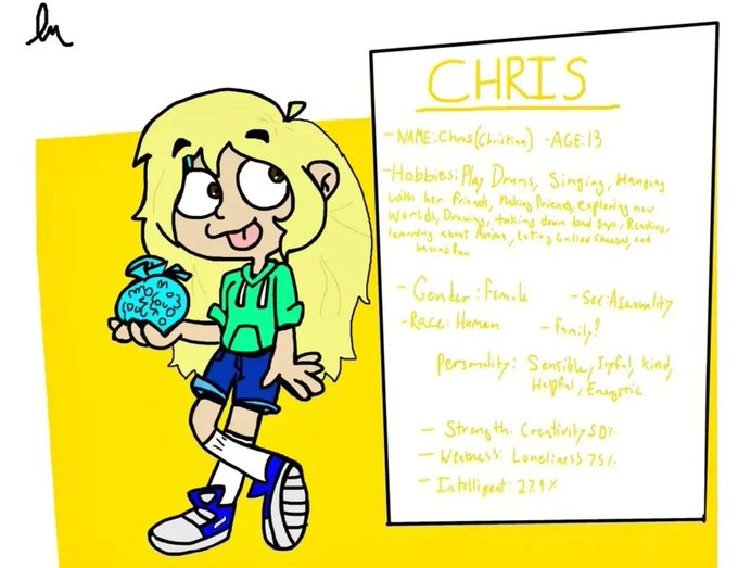 @Astr0B0t0 Here she come, my OC, Chris who is very funny and always cheerful with her friends 😃 👅 🍬💛
