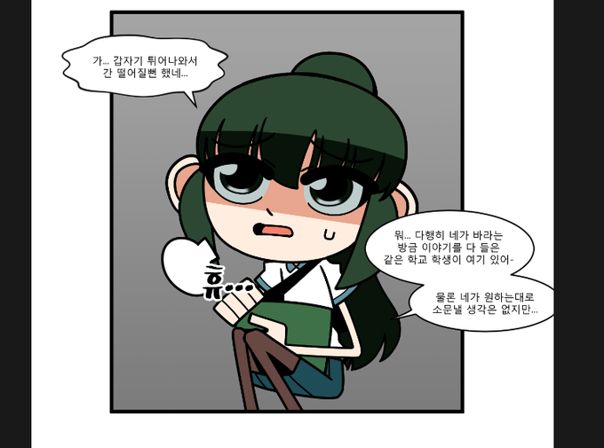 지켜볼게요 1화부터 3화까지 실수로 맨다리로 칠해졌던 예림이 스타킹... 4화 올리고 쓱싹 수정했습니다 근데 픽시브는 수정 불가능/ 포스타입은 다시 자르기 힘들... ...해서 네이버에만...