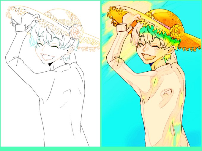 #皆さん線画と塗った後を見せてください おもろうない!