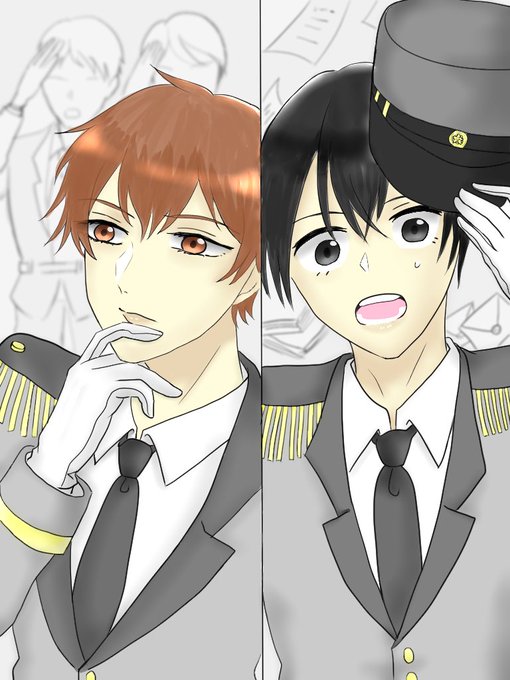 (軍服分からないなりに描いたので、ここ違うよって所あっても気にしないで下さい…)