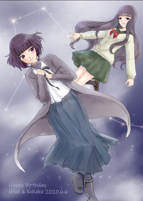 マジョさん、琥珀さん、お誕生日おめでとうございます。6巻の「かぞく」は何度読んでも、泣けてきます。そんなふたりの絆を描きたく、「Twin Soul」をテーマにしてみました。幸せになろうね! #女子高生の無駄づかい #女子無駄 #マジョ #久条翡翠 #久条琥珀 #3ケ月でさいとうなおきを倒す