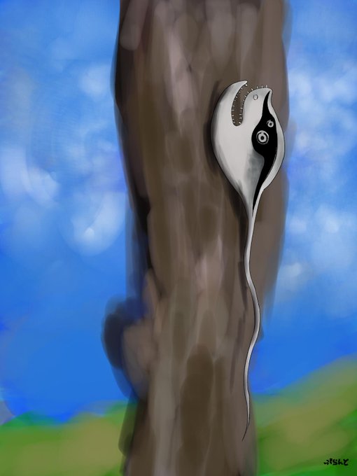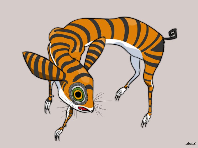 【鱗舐(リンショウ)】 目と体つきと足はベロリンガ、顔はフーディンに似ている妖怪。 舐められると徳の高い者は願いが三つかなうが、腹黒い者は顔に鱗のようなかさぶたができて痒くなる。それが剥がれると激痛が走り、死んでしまう。 性格はおとなしく、花を食べる。 #独断と偏見で選ぶ妖怪紹介