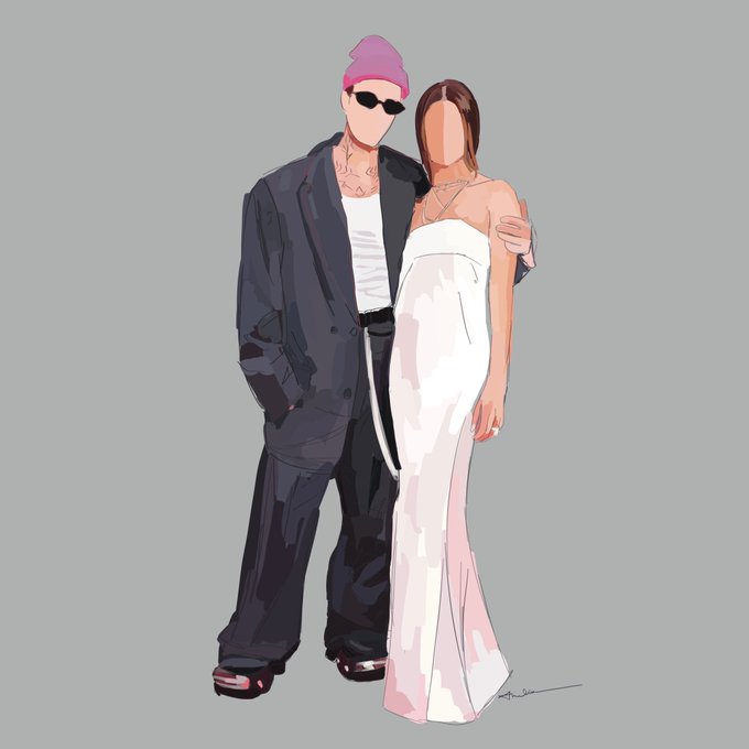 @justinbieber and @haileybieber wearing @ysl mind custom @balenciaga for the 2022 @recordingacademy. The #Biebers were styled by #karlawelchstylist @crocs @mgmgrand #GRAMMYs #customportraits