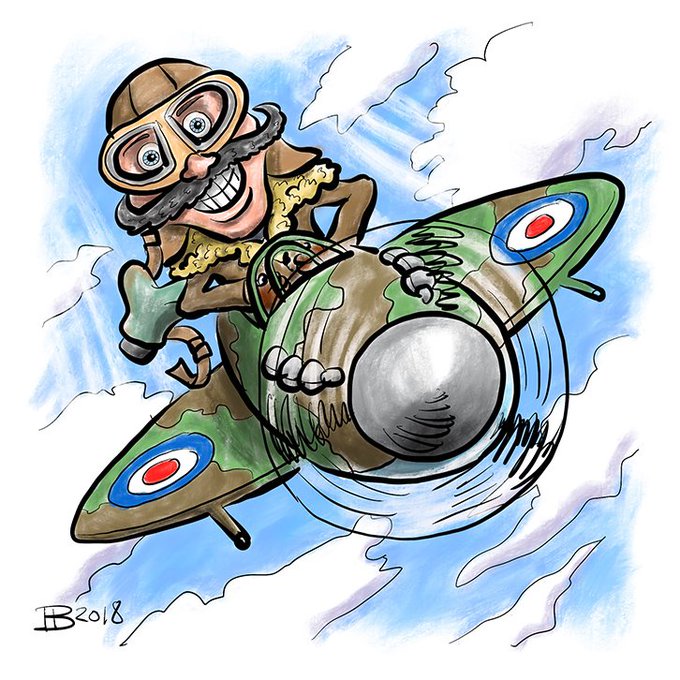 Okay, so here's my actual #drawing for today's #saturdayscribbles #flying themed image. It's Wing Commander Chuckles having fun in his #Spitfire (my all time favourite plane). @SatScribbles #RAF100 #illustration #RAF #Procreate
