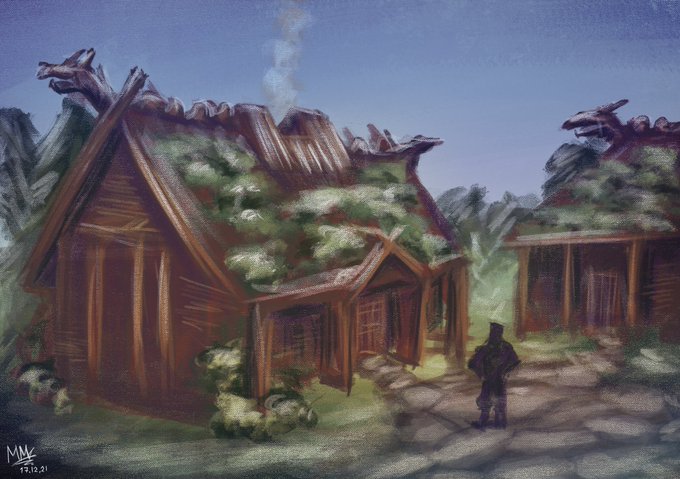 #art #drawing #sketches #fantasy #fantasyart Fernehel countryard houses.