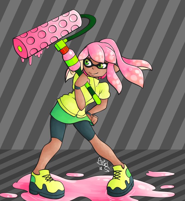 Some #Splatoon art of an inkling. I love these things. I couldn't decide what her ink color should be.